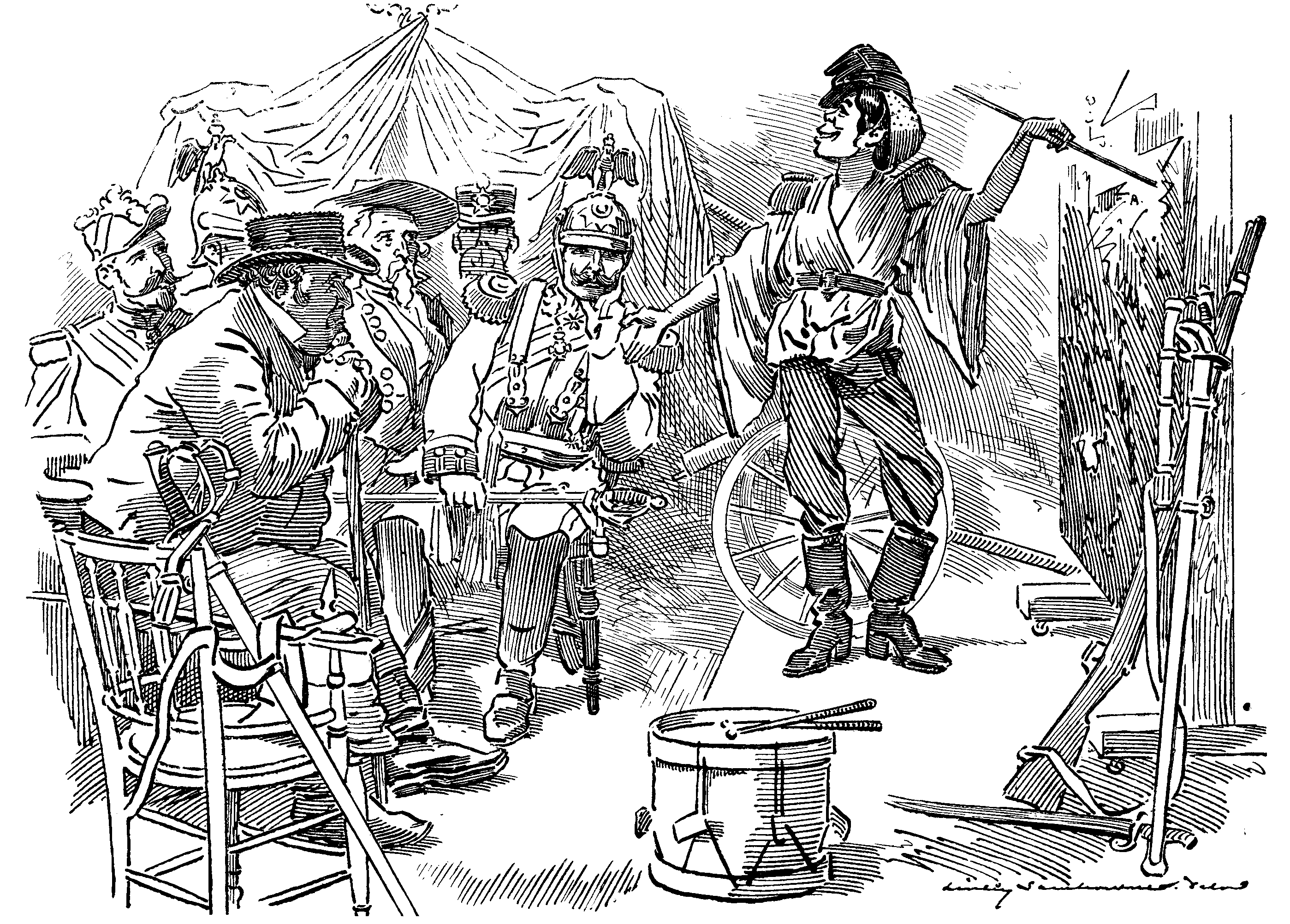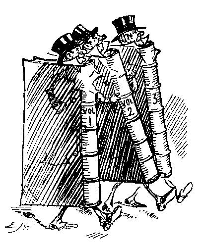 A Baronite warns me thusly: In opening The New Standard Elocutionist, selected by Alfred H. Miles (Hutchinson & Co.), you may think there is a mistake somewhere, as on the first page you are confronted with an anatomical sketch of a cheerful-looking gentleman with his chest laid open for inspection. Don't be afraid, it's all right, the gentleman's countenance is reassuring, still, it makes me wonder if all reciters come to that. But after reading a little of Lennox Brown's chapter, we find it is an object lesson teaching the usually inflated reciter how to work his diaphragm as it should be worked. Perhaps its advantages may be felt when the elocutionist wishes to rouse an admiring but slumbering audience with a little thundering out of "Rise! sleep no more." If the average recitation has a soporific effect, Phil May's drawings in Fun, Frolic and Fancy, by Byron Webber will soon wake you up. The annual of three F's quite fulfils the "promise of May."