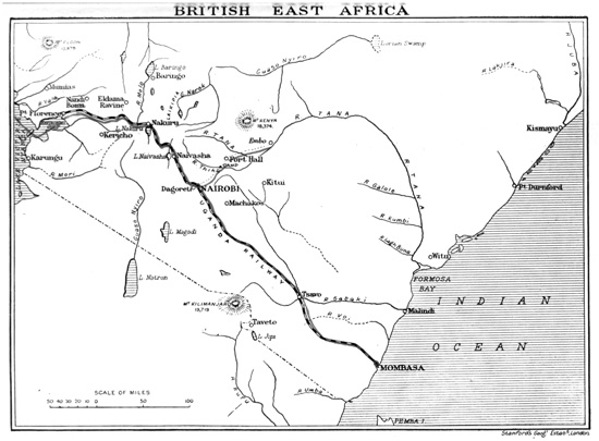 I would go so far as to say that it is only wasting time and money to try to govern, or still more develop, a great African possession without a railway. There can be no security, progress, or prosperity without at least one central line of rapid communication driven through the heart of the country. Where, as in Northern Somaliland, the land itself is utterly valueless, a mere desert of rocks and scrub, or where the military dangers are excessive and utterly disproportioned to any results that can ever be reaped—withdrawal and concentration are the true policy. But if for any reason it be decided to remain and to administer, a railway becomes the prime of absolute necessities. Till then all civilized government is extravagant and precarious, and all profitable commerce practically impossible. These considerations have lately led a British Government to sanction the extensive railways, nearly 600 miles long, now being rapidly constructed in Northern and Southern Nigeria; and the same arguments apply, though in my view with increased force, to the Uganda Protectorate. 218
