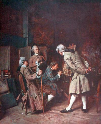 Mention should be made, before passing on to the military paintings, of just a few other genre paintings: The Reading at Diderot’s, The Amateurs, The Flute Players.