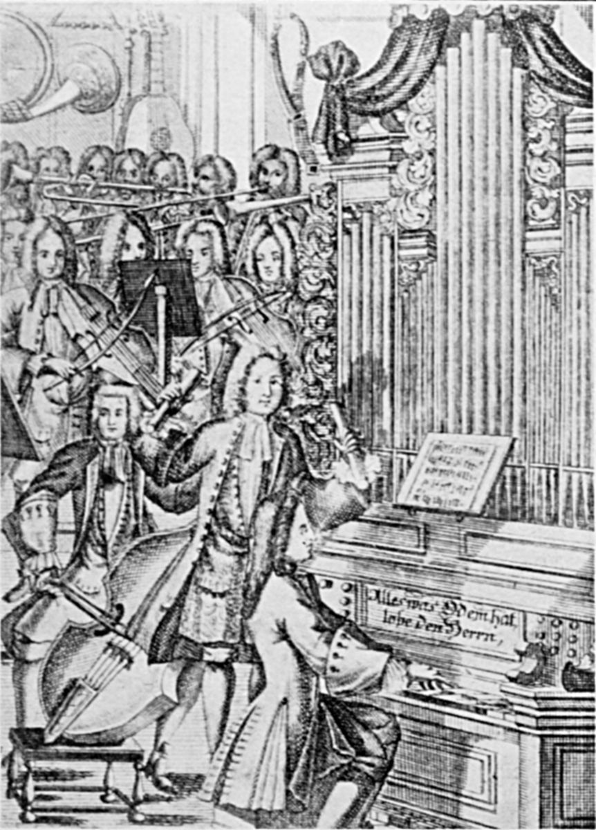 [19] The organ had fifty-four stops, three manuals, and pedal; and the post of organist at this church was one of the best in Germany. It had one drawback, however; on the resignation or death of an organist, the person appointed to succeed him was obliged to marry his daughter. Mattheson and Handel in 1704 and Bach in 1706 had thought of applying for the post, but were all frightened away by this condition. Buxtehude’s successor was Johann Christian Schieferdecker, who had been harpsichord player in the opera at Hamburg.