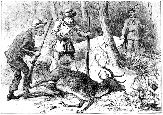 The next moment there was a flash, and the buck made a prodigious bound, dashed straight toward the fallen tree behind which the boys were crouching, and fell within fifty feet of them.