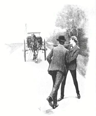 A quarter of an hour passed and then a second cyclist appeared. This time it was the young lady coming from the station. I saw her look about her as she came to the Charlington hedge. An instant later the man emerged from his hiding-place, sprang upon his cycle, and followed her. In all the broad landscape those were the only moving figures, the graceful girl sitting very straight upon her machine, and the man behind her bending low over his handle-bar, with a curiously furtive suggestion in every movement. She looked back at him and slowed her pace. He slowed also. She stopped. He at once stopped too, keeping two hundred yards behind her. Her next movement was as unexpected as it was spirited. She suddenly whisked her wheels round and dashed straight at him! He was as quick as she, however, and darted off in desperate flight. Presently she came back up the road again, her head haughtily in the air, not deigning to take any further notice of her silent attendant. He had turned also, and still kept his distance until the curve of the road hid them from my sight.