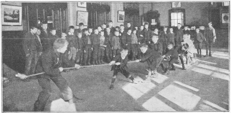 So they did. There was plenty of hot water left in the kettle, and everyone helped: even the Phœnix, who took up cups by their handles with its clever claws, and dipped them in the hot water, and then stood them on the table ready for Anthea to dry them. Everything was nicely washed up and dried and put in its proper place, and the dish-cloth washed and hung on the edge of the copper to dry, and the tea-cloth was hung on the line that goes across the scullery. (If you are a[113] duchess's child, or a King's, or a person of high social position's child, you will, perhaps, not know the difference between a dish-cloth and a tea-cloth, but in that case your nurse has been better instructed than you, and she will tell you all about it.) And just as eight hands and one pair of claws were being dried on the roller towel behind the scullery door there came a strange sound from the other side of the kitchen wall—the side where the nursery was. It was a very strange sound indeed—most odd—and unlike any other sounds the children had ever heard. At least, they had heard sounds as much like it as a toy engine's whistle is like a steam siren's.