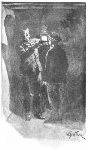 And as he spoke a lantern flashed its light through the window of the kitchen, a face peered in, and a voice said:—