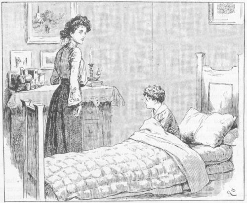 "Do go away," said Robert, nervously, to the policeman. "We're just going to bed—that's our bedroom candle—there isn't any row. Everything's as quiet as a mouse."