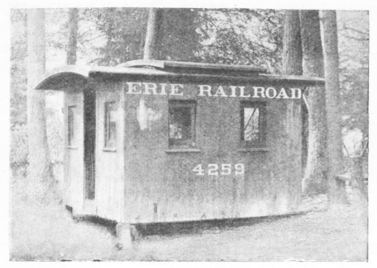 "The discarded railway carriage shown in the photograph has had an eventful career. After being drawn at the end of freight trains over thousands of miles of the Erie Railroad tracks it was finally condemned and sent to the graveyard, where cars of this character meet an ignominious end—they being chopped up for firewood. But after it had been sent to what was thought would be its last resting-place, Lieut. Peary, the well-known Arctic explorer, asked the Erie Railroad officials if they could loan him a discarded carriage for use on his ship Windward. This carriage was accordingly selected, and it was placed on the deck of the Windward, where it was fitted up as a cabin. The journeys of this carriage, therefore, instead of being at an end had really only begun, for it was destined to make the longest trip in its history. It remained on board the Windward throughout the perilous trip to the Frozen North, and returned with the ship to New York a little over a year ago. Lieut. Peary having no further use for it sent it back to the Erie Railroad, and it is now an object of curiosity at Shohola Glen, Pike County, Pa., a popular excursion resort on the line of the Erie Railroad."—Mr. Adolph A. Langer, 116, Danforth Avenue, Jersey City, N. J.