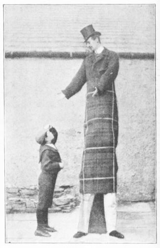 "At first sight my photograph seems to be that of an immensely tall man, but in reality the legs of the giant belong to somebody else, while the top half is standing on a barrel."—Mr. H. S. Nicolson, Brough Lodge, Fetlar, Shetland.