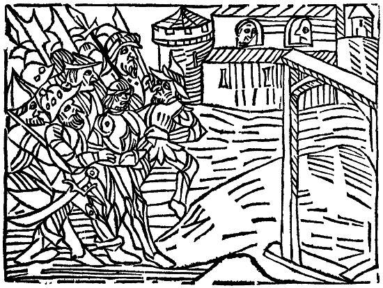 | Comment les payens proposerent de pendre Guy de bourgoigne voyans les françoys qui le secoururent puissamment. | Le .xv. chapitre. |