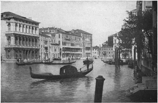 The poet Browning spent the last weeks of his life in a suite of rooms on the lower floor of the Palazzo 278 Rezzonico, and here he died, which fact is recorded upon a tablet on the outside wall. We stopped to reread the inscription upon the gray palace wall. A young girl who was with her mother in a gondola quite near was reading aloud in English the Italian words upon the tablet, "Robert Browning died in this house, December 12, 1889," and the impressive and quite untranslatable "Venezia pose." With a questioning look at us she repeated the familiar lines from "De Gustibus":