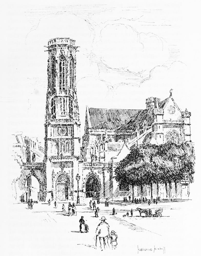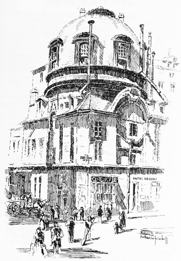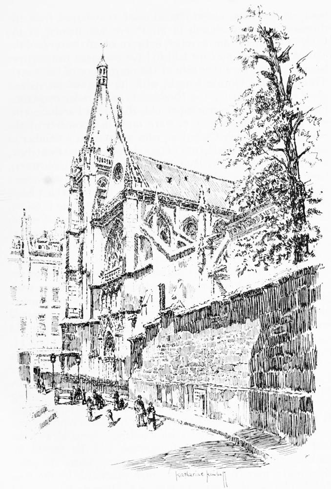 [177] In 1664 we find Guilliaume roy des Ménéstriers, the viol players and masters of dancing, acting in the name of the foundation against the usurpations of the Fathers of the Christian Doctrine. In 1720 the title of the church was confirmed by royal decree as St. Julian of the Minstrels. The church and the street of the minstrels were swept away to make the Rue Rambuteau.