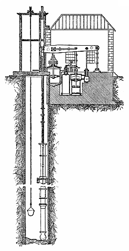 An Artesian well, so called from the province of Artois, in France, is a shaft sunk or bored through impermeable strata, until a water-bearing stratum is tapped, when the water is forced upwards by the hydrostatic pressure due to the superior level at which the rain-water was received.
