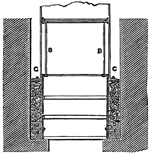 Nearly every civil engineer is familiar with the fact that certain porous soils, such as sand or gravel, absorb water with rapidity, and that the ground composed of them soon dries up after showers. If a well be sunk in such soils, we often penetrate to considerable depths before we meet with water; but this is usually found on our approaching some lower part of the porous formation where it rests on an impervious bed; for here the water, unable to make its way downwards in a direct line, accumulates as in a reservoir, and is ready to ooze out into any opening which may be made, in the same manner as we see the salt water filtrate into and fill any hollow which we dig in the sands of the shore at low tide. A spring, then, is the lowest point or lip of an underground reservoir of water in the stratification. A well, therefore, sunk in such strata will most probably furnish, besides the volume of the spring, an additional supply of water.