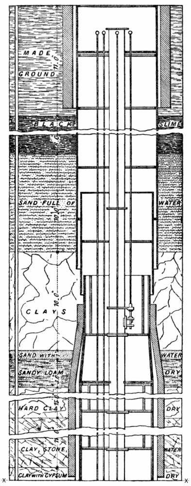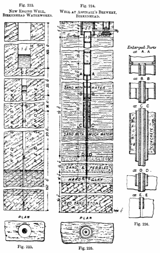 The subject-matter of the following pages is divided into chapters which treat of geological considerations, the new red sandstone, well sinking, well boring, the American tube well, well boring at great depths, and examples of wells executed and of localities supplied respectively, with tables and miscellaneous information. Each system with its adjuncts has been kept complete in itself, instead of separating the various tools and appliances into classes, the plan adopted in the most approved French and German technical works. This, however, when too rigidly adhered to, as is the case with German works in particular, renders it troublesome for even a practised engineer to grasp a strange system in its entirety, while the pupil is wearied and retarded in his reading by an over-elaborate classification.
