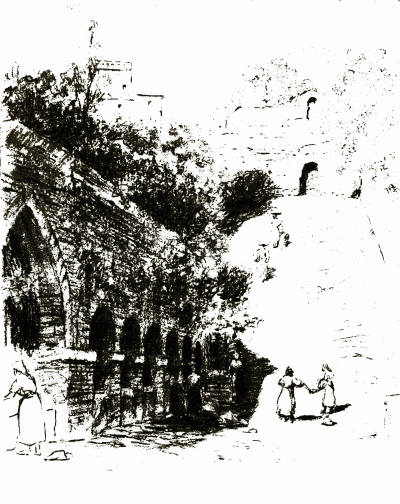 It was not so long a step as it appeared from Signorelli's Visions of the Future Life to the Necropolis of Etruria, below the frowning walls of the city. For Orvieto is shadowed by the Wings of the Angel of Death—the genie of the ancient Etruscans, which we see faintly limned upon their sepulchres—and as the old custode at the Mancini Tombs told us with arms outspread towards the plain, 'c'è una vasta città dei morti, più grande che la città alta.'