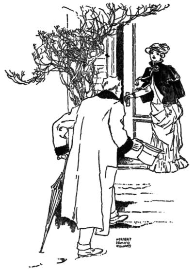 Auntie called to him from the door. She had seen him from the window and come down. He went in to her there on the doorstep and put his arm around her and kissed her.