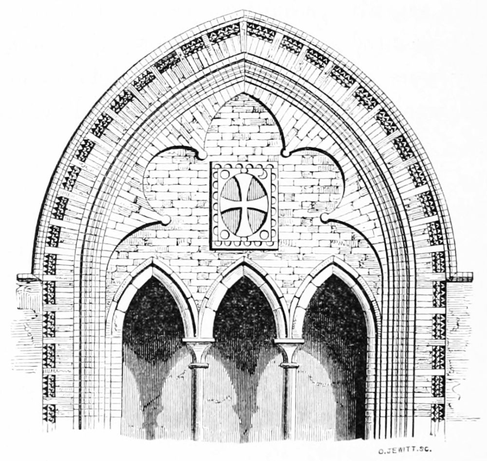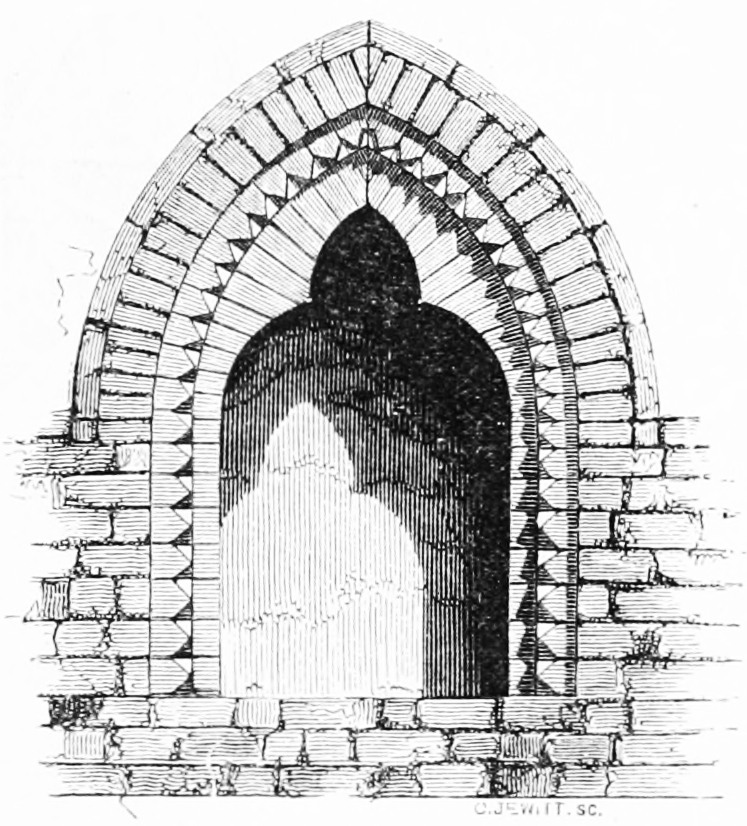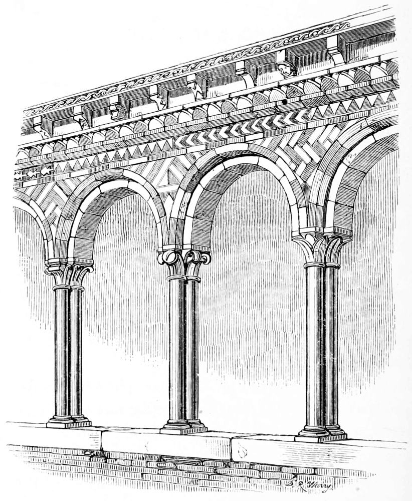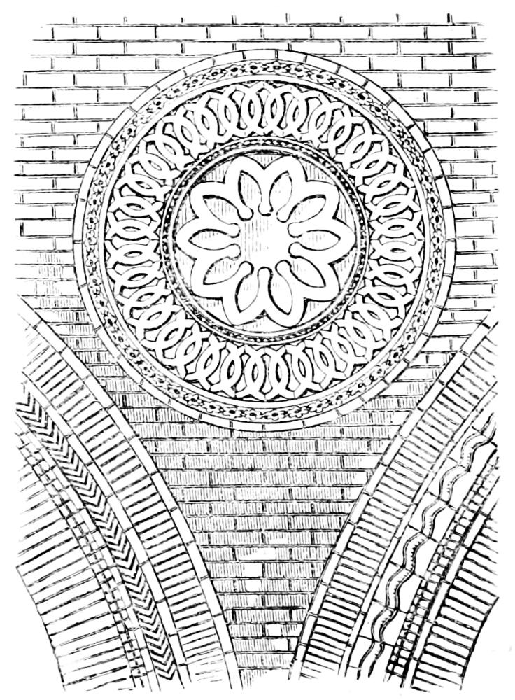 [38] The twelfth-century bricks here measure seven inches by two inches, and are built with a half inch mortar joint; they are of red and yellow colour, used indiscriminately, and, though good and lasting, extremely rough in their make.