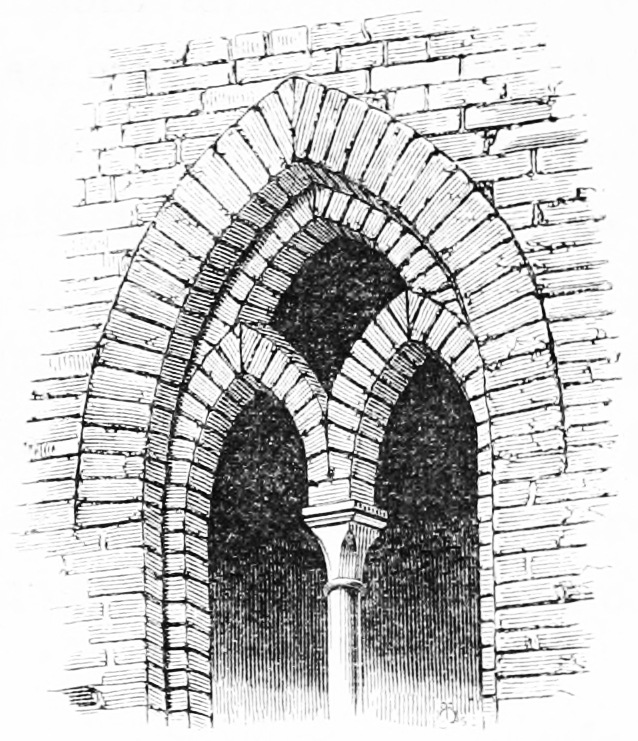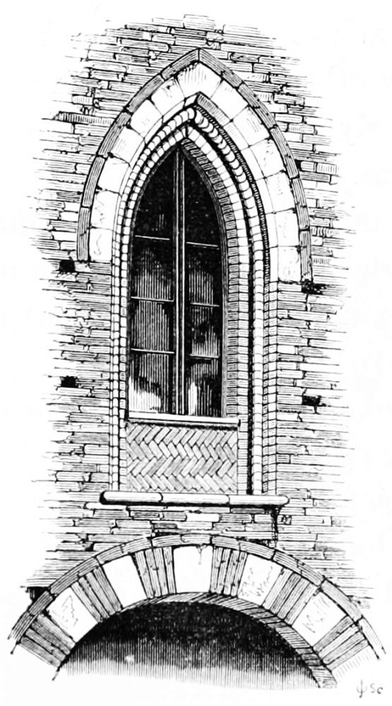 [89] The windows in the Castle of S. Angelo, between Lodi and Pavia, are the only examples I met with of the use of brick for monials. In Northern Germany, on the contrary, where the shaft was almost unknown, brick monials are universal, and generally unsatisfactory in their effect.