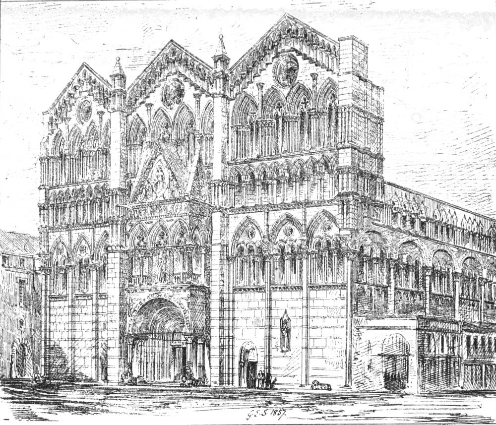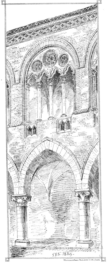 It remains only to say that all the illustrations which I have given are engraved from my own drawings on the wood from my sketches made on the spot, and that I have endeavoured as much as possible to avoid giving subjects which have been before published. It would have been easy to add largely to them, especially from my sketches in Venice, but it seemed to me that, as this could only be accomplished by adding also to the cost of the book, it was much better to omit them. I have avoided therefore giving drawings of any buildings already drawn by Mr. Gally Knight, to whose work I must refer my readers for representations of several of the buildings described, and for illustrations of Venice I must refer to Mr. Ruskin’s engravings and to the photographs which have rendered her features so well known to almost all students of architecture.