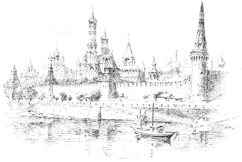 Moscow, where the east merges with the west but remains distinct and unconquered, has a fascination all its own; the town not only has been great, but is so yet; its influence pervades the Russian empire and is still mutable and active; its story therefore comprises more than the legends and associations of an ordinary city, but, if confined merely to an enumeration of the facts and traditions of the past will not be void of interest, and however fully given, must fall far short of what the imaginative reader may reasonably expect. Of the meagre character of this present account I am fully aware; of its positive errors I am, at present, unhappily ignorant, but I trust that those who discover mistakes will not only forgive, but notify me of them, that later readers may be as grateful for the favour as I myself shall be. Of place names I have given the idiomatic, instead of the usual literal translation; where I have attempted an equivalent reproduction of the original the transliteration will be comprehensible to those who know nothing of either French or German. That I may not be charged with inconsistency in this, I may explain that where a foreign spelling—as rouble—has become familiar I have used the Anglicism. To most readers the names will, I fear, be unpronounceable however spelled; but only the expert will regret that I have not given the original Russian. To them the excuse I offer is, that to everyone ignorant of the tongue Russian names are absolutely undecipherable, being apparently composed of an alphabet in spasms made up into words of poly-syllabic length.