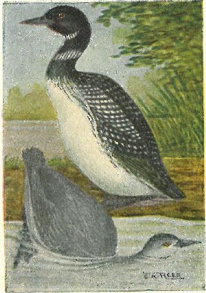 Loons are fully as expert in diving and swimming as are the grebes. They are usually found in larger, more open bodies of water.
