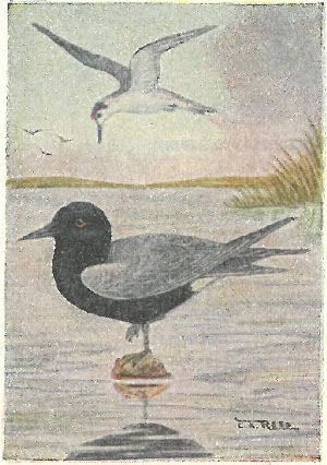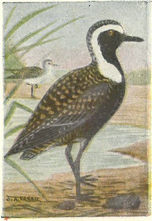 A PLEA TO SPORTSMEN.—Many of the birds shown in this book are Game Birds, that is, birds that the law allows you to shoot at certain seasons of the year. Some of these are still abundant and will be for numbers of years; others are very scarce and if they are further hunted, will become entirely exterminated in two or three years. Bob-whites are very scarce in New England; Prairie Hens are becoming scarce in parts of the west; the small Curlew is practically extinct, while the larger ones are rapidly going. In behalf of all bird lovers, we ask that you refrain from killing those species that you know are rare, and use moderation in the taking of all others. We also ask that you use any influence that may be yours to further laws prohibiting all traffic in birds. The man who makes his living shooting birds will make more, live longer and die happier tilling the soil than by killing God’s creatures. We do not, now, ask you to refrain from hunting entirely, but get your sport at your traps. It takes more skill to break a clay pigeon than to kill a quail.