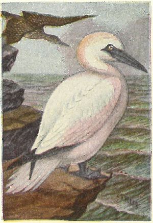 GANNETS. Family Sulidæ:—Bill heavy and pointed; face and small throat pouch, bare.