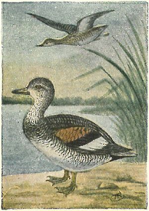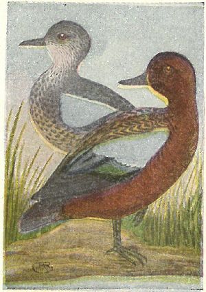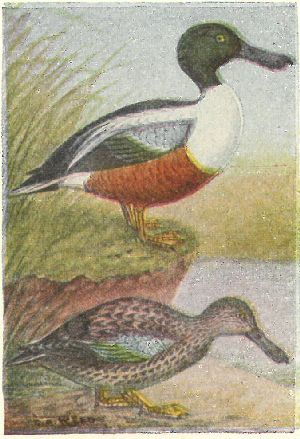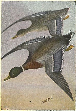 Other ducks have rather broad bills, more or less resembling those of the domestic duck. Their flight is rapid and direct. River ducks have no web, or flap, on the hind toe; they get their food without going entirely under water, by tipping up. Sea ducks have a broad flap on the hind toe.