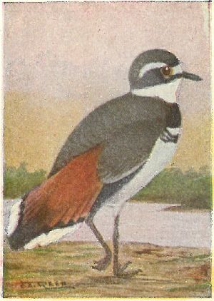 JACANAS. Family Jacanidæ:—Bill with leaf-like shield at the base; legs and toes extremely long and slender; sharp spur on wing.