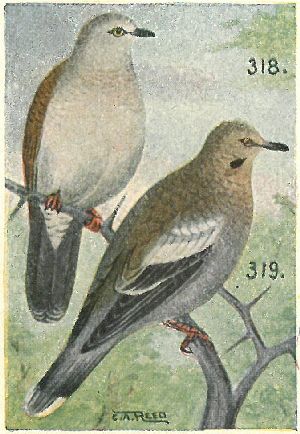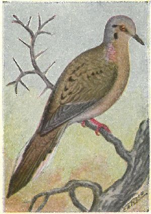 Family Columbidæ:—Bill slender, hard at the tip, and with the nostrils opening in a fleshy membrane at the base. Plumage soft grays and browns.