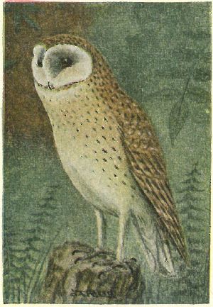 BARN OWLS. Aluconidæ:—Black eyes in triangular facial disc; middle toe-nail serrated.