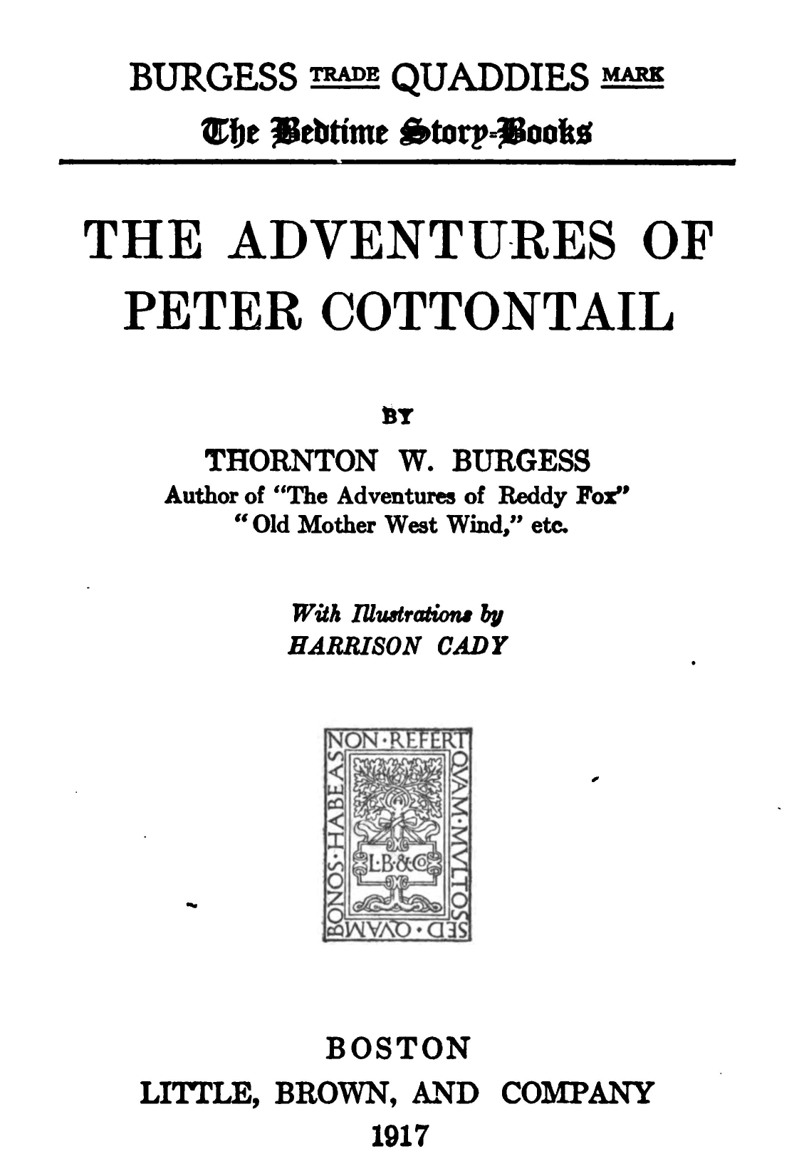 "Cottontail, Peter Cottontail! How much better sounding that is than Peter Rabbit! That sounds as if I really was somebody. Yes, Sir, that's the very name I want. Now I must send word to all my friends that hereafter I am no longer Peter Rabbit, but Peter Cottontail."