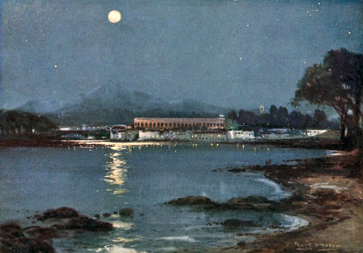 British warships have made Arosa Bay their headquarters for many years, and have found the landlocked stretch of sea and the surrounding hills a glorious and delightful region for sport and pleasure. It is remarkable that the three great bays on the coast of Galicia—Arosa, Pontevedra, and Vigo—have their entrances protected by islands which break the force of the Atlantic waves.