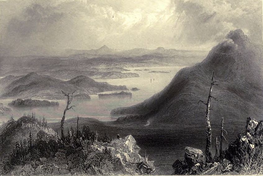 Lake Charles is generally talked of as one of the pleasantest spots round Quebec, and instances have been known of parties of pleasure reaching it. It is about three miles in length, and perhaps one at its greatest breadth. Towards the middle of it, two rocky points shoot out so as to form, properly speaking, two lakes, connected by a narrow channel. A scattered hamlet, taking its name from the lake, is seen with its meadows and tufted orchards, along the right bank of the outward basin. Wooded heights rise on the opposite shore, and surround the whole of the interior lake, descending everywhere to the water’s edge; the whole forming a scene of lovely loneliness, scarcely intruded on by the canoe of the silent angler. There is more in the whole landscape to feel than to talk about, so that it is little wonderful that an excursion to Lake Charles should be more frequently talked about than made.