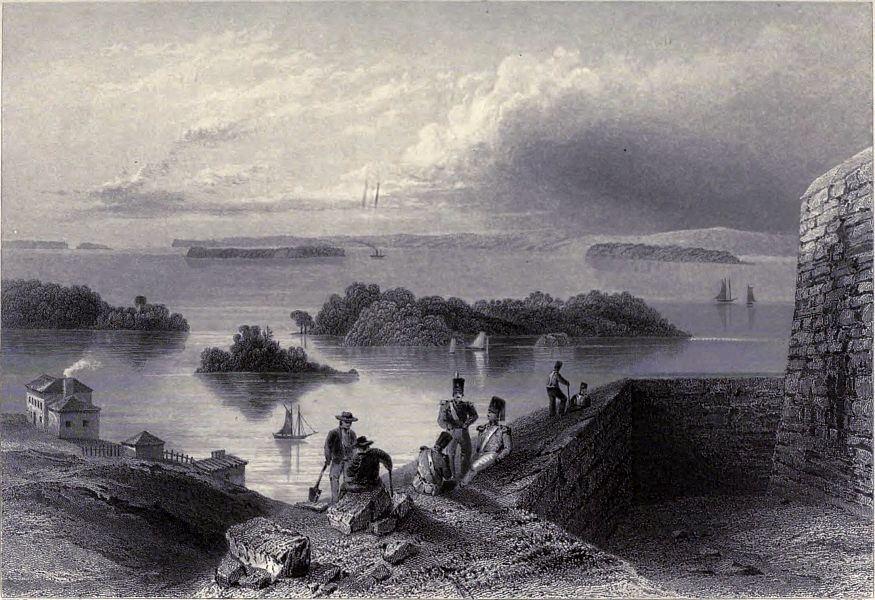 “We sailed again soon after breakfast, and in the morning (9th) found ourselves at Ogdensburgh, about 260 miles from Niagara, which we had left on the 6th. The preceding afternoon we had entered the St. Lawrence, and I had been much delighted with our sail through that expanse of it which is called the Lake of the Thousand Islands. In reality, there are more than 2,000, of every size and form, and a lovely afternoon exhibited them in all their beauty. As we glided past them, on the smooth surface of the St. Lawrence, I thought I had never beheld a scene which so nearly realized my ideas of enchantment. The banks of the river as we proceeded were rather less wild and interesting than I had expected.