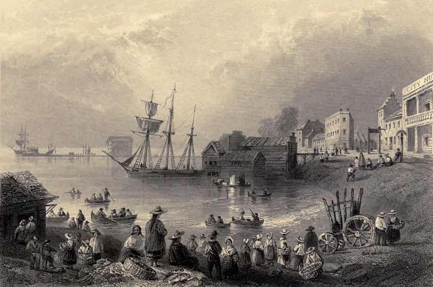 “In the streets, however, there were many peculiarities to remind us that we were not at home. More than three-fourths of the inhabitants are said to be catholics; and the bells of the cathedral are never at rest. The priests, who are the seigniors of the island, are very rich; but they are said to be charitable, moral, and by no means luxurious. Our young friends would be amused by the numerous dog-carts, the dogs in gig or tandem harness, in every part of the town, and by the calèches of the last century, which would serve as a foil for a north of England shandan. A considerable number of Indians are usually walking the streets with moccasins for sale; and I saw several on the river-side, a mile distant, in wigwams, of which their birch canoe formed a principal part. The town is most agreeably situated, and there is an air of industry and animation in the inhabitants; and yet, occasionally, the narrow streets and iron window-shutters excite a sensation of gloominess, of which I cannot readily divest myself till I return to our cheerful inn, where the arrival and departure of steam-boats occasion a constant succession of guests. Our party at table, which dwindled to six, rose, two days since, suddenly to sixty, all fugitives, as those who are not on business seldom allot above two days to this part of their tour. As the friends with whom I am most intimate have been detained since their return from Quebec, by the want of a steam-boat, I have been very well off, having access to their three drawing-rooms, with an agreeable female party in each. Our host, although a Londoner, and adopting London hours, accommodates himself by pursuing the American plan of compelling us to eat at a common table; but the style of the house is admirable, and we can obtain private sitting-rooms. One of those occupied by our party is that which Lord Selkirk usually occupied while here, and often recalls him to my recollection. All I hear, and I have conversed with many of both parties on the subject, has only served to confirm my previous impressions with respect to the treatment which he received; in some instances, too, in quarters where it was least excusable, and at the hands of those from whom every British subject was entitled to demand impartiality. In an hour we are going on board the Swiftsure steam-boat for Quebec, and I am glad to find that several of my acquaintances will be of the party.”