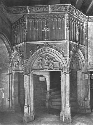 The excellent preservation of specimens of even the most fragile wood-carvings of this century is due doubtless to the extreme care with which the workmen selected and prepared their material. Oak was almost invariably employed; and it is evident that not only was it critically selected but that it was subjected to an elaborate process of preparation. It was probably left for long in damp places, sometimes even soaked in water, after which it was thoroughly dried in the open air and thereafter occasionally smoked, for the purpose of hardening the surface.