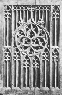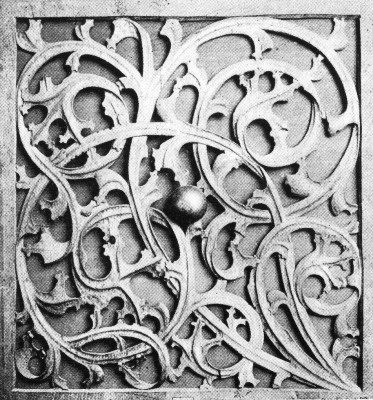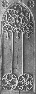 In design, the work of this period evinces great vigor and originality. The best workmen did not repeat predetermined patterns, but allowed the motives to grow under their hands, thus endowing even the smallest pieces with an individuality which makes the decorative effect as spirited and varied as it is graceful. The perfection of architectonic designs in the wood-carving of this time, was probably due rather to emulation of the lace-like and elaborate carving in stone which was being executed contemporaneously, than the imitation of it.