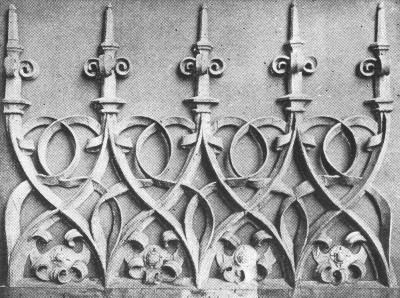 The modern notion that carved wood should be left unpainted was quite foreign to Gothic designers. They preferred even a simple coating of white or red to the natural tone of the material, and commonly the chief members of all the mouldings were adorned with delicately painted patterns. Our "restorers" have in most cases, however, scraped off all that remained of this brilliant decoration.