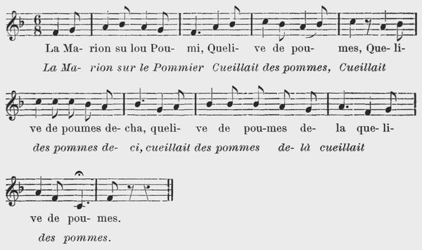 6 Les pommes de la Marion Depuis ce jour grandissent, Depuis ce jour grandissent deci, Depuis ce jour grandissent delà, Depuis ce jour grandissent. |
