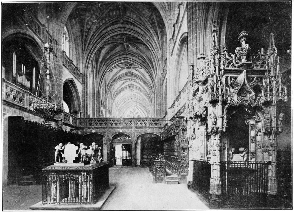 [16] Choir: Properly, the space in a church reserved for the clergy and their assistants, especially the singers: hence, by extension I—The enclosure itself which is sometimes very massive and elaborate, a high stone wall sculptured or otherwise richly adorned, and