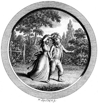 Mit drey Sprüngen war ich auf dem Schlosse. Ich suchte Fräulein Malchen, und fand sie im Garten, wo sie Blumen pflückte und Kränze flocht. Ich stahl mich ganz leise hinzu. Sie hatte sich ins Gras gesetzt, pflückte alles, so weit sie mit der Hand erreichen konnte, um sich weg, und war so ämsig damit beschäftigt, daß ich mich ihr bis auf ein paar Schritte unbemerkt nähern konnte. Anfangs war ich Willens, ihr von hinten die Augen zuzuhalten, und sie rathen zu lassen, wer es wäre, aber ich hörte, daß sie etwas für sich sprach, und das wollte ich gerne wissen. Ich horchte und vernahm folgendes: