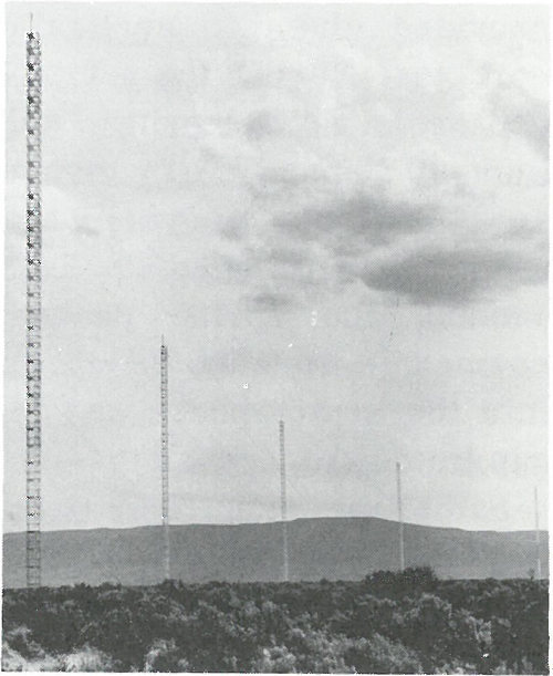 Network of towers on the Atomic Energy Commission reservation near Richland, Washington, used by atmospheric physicists in measuring quantity, concentration, and dilution of radioactive materials in the atmosphere.