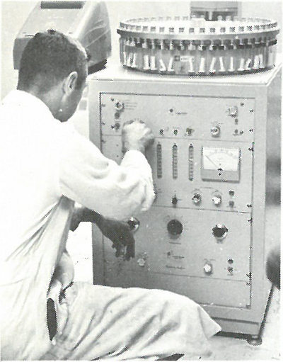 A University of Georgia Research Institute ecologist studying biological specimens in a controlled environment near the AEC Savannah River Plant, Aiken, South Carolina.
