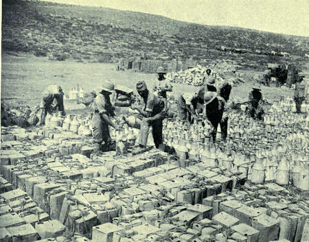 Just as we got into one of these cleaning depots a Jack Johnson burst very near us, but nobody took the slightest notice of it, so accustomed does one become to the happenings of war. Five or six men were in each hot bath, and something like 2000 baths a day are given. The men become thoroughly clean personally, and their clothing also is perfectly freed from vermin and filth, and the troops look as happy as possible.