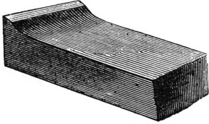 A very convenient tool for inlaying veneers edgewise, so as to produce alternate dark and white lines is made by taking a piece of steel, one fourth of an inch by one sixteenth thick, and making a chisel, like Fig. 73. The bottom is rounded to prevent it from digging in. To use this tool, or to inlay fine white and black lines, or white lines alone, all over the surface of any piece of wood in any pattern desired, it is only needful to mark out the pattern first, incise it all around with a sharp keen edge, such as a knife blade broken off to form a square end, and then follow the lines with this tool, when the wood will come away, leaving a clean channel, in which the veneer may be inserted with expedition and neatness. In crossing the corners, it is necessary to use caution, so that they be not broken away, for no inlaying looks well if chipped, or ragged at the edges. This is especially convenient for drawing lines across mahogany boxes that have been put together before inlaying was thought of for them. The veneers should all be glued together, side and side first, that is, if two colors are used, then they will fit on the ends properly, and may be handled with more expedition.