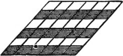 I do not saw off each square strip by itself before I glue the stock, but I lay up several flat pieces, as in Fig. 69, which represents one end section of the strips, longer than it is high, the saw removes some in cutting, so that when I saw down through the top vertically, as shown by the straight line A, I obtain square strips in long pieces, but all glued together so they are easy to handle, these I afterward glue together again, so that white and black alternate, as in the checker-board, and I then have the pattern precisely uniform in all the length of the stock. I claim originality for this plan, and also expedition in execution; more than either I get entire uniformity. Of course it is easy to make any other pattern in the same way, and it is surprising to see how many rectangular and acute-angled patterns can be made with these sections. It is sometimes possible to get veneers of the right thickness, but any veneer cutter will saw the wood as desired.
