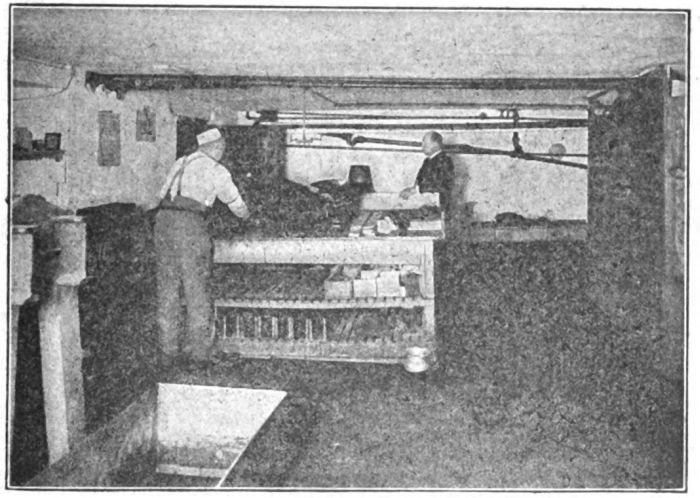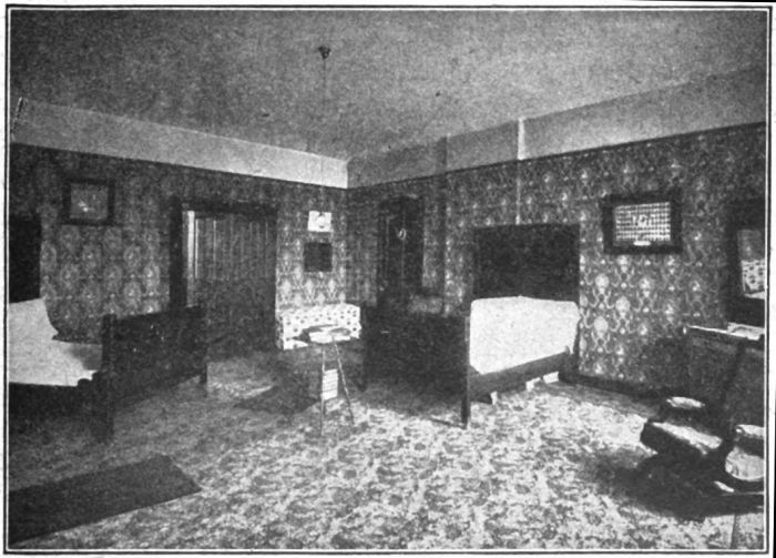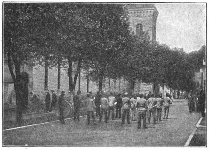 The next move, and one that is a decisive reminder of his future status in the world, is to the bath room, where he takes a bath and puts on a “second-grade” uniform, there being three grades in all. The first is the highest. Its garb consists of a neat grey suit and cap. First grade prisoners are entitled to write one letter each week, to draw a ration (four ounces) of tobacco weekly, and to receive visitors once in four weeks. They have a dining room to themselves and are served with a greater variety of food than are the prisoners in the other grades. They have also such other privileges granted them from time to time as their general conduct warrants.