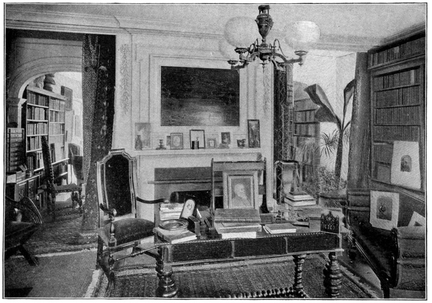 Of his Cambridge life after his return to Elmwood his cousin writes: “The house was haunted by sad memories, but at least he was once more among his books. The library, which filled the two rooms on the ground floor to the left of the front door, had been constantly growing, and during his stay in Europe he had bought rare works with the intention of leaving them to Harvard College. Here he would sit when sad or unwell and read Calderon, the ’Nightingale in the Study,’ in whom he always found a solace. Except for occasional attacks of the gout, his life had been singularly free from sickness, but he had been at home only a few months when he was taken ill, and, after the struggle of a strong man to keep up as long as possible, he was forced to go to bed. In a few days his condition became so serious that the physicians feared he would not live; but he rallied, and, although too weak to go to England, as he had planned, he appeared to be comparatively well. When taken sick, he had been preparing a new edition of his works, the only full collection that had ever been made, and he had the satisfaction of publishing it soon after his recovery. This was the last literary work he was destined to do, and it rounded off fitly his career as a man of letters.”