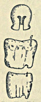 The relative form of the handle with the celt affixed has been much discussed, but the consensus of opinion leads one to believe that the handle was somewhat in the shape of a hockey-stick, the bent part being inserted in the socket of the celt. Before the evolution of the socketed celt the latter was inserted in a cleft stick and projected from[Pg 11] one side at right angles, being firmly bound in that position by cross-lacing. This projection doubtless suggested the bent stick of a later period.