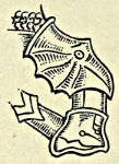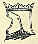 The Scimitar became a favourite weapon with the infantry during the greater part of the Tabard Period, the blade being curved at the back with a cusp at the point, which distinguished it from the falchion. A finger-guard was often added by prolonging one side of the cross-piece, whereby it ran parallel to the grip, and then either curved outwards or, later in the period, turned inwards to join the pommel.